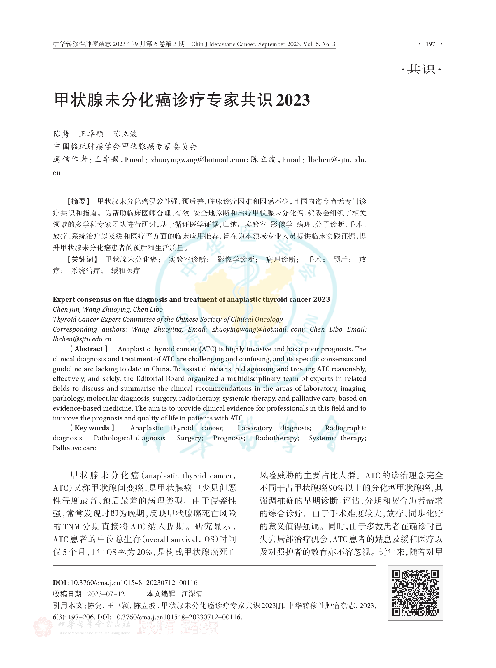 甲状腺细针穿刺细胞病理学诊断专家共识(2023)