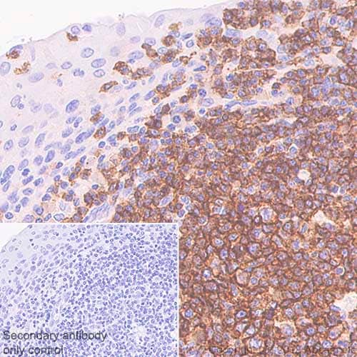 - B细胞系肿瘤细胞呈阳性,包括白血病 (B淋巴母细胞白血病/BLBL, B-ALL/B-LBL),但浆细胞瘤阴性