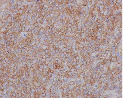 在肿瘤组织除了表达于滤泡性淋巴瘤,也表达于其它生发中心来源的淋巴瘤,如Burkitt淋巴瘤、DLBCL、霍奇金淋巴瘤等。因此,该抗体可以用于生发中心来源的B细胞淋巴瘤的研究,但在CLL、MCL、LPL中均有不同程度表达。