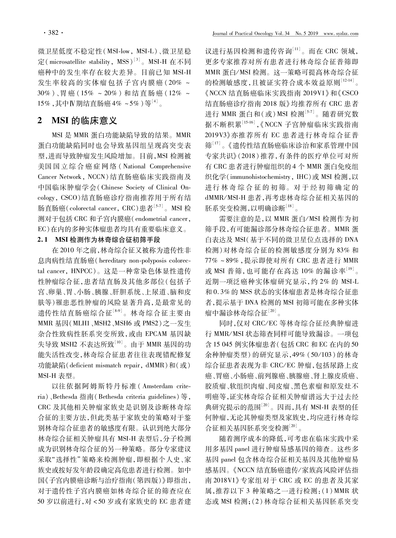 结直肠癌及其他相关实体瘤MSI检测专家共识(2019)